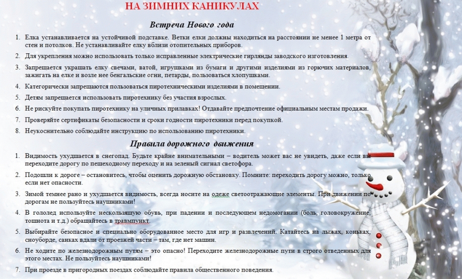 Безопасность в период зимник каникул